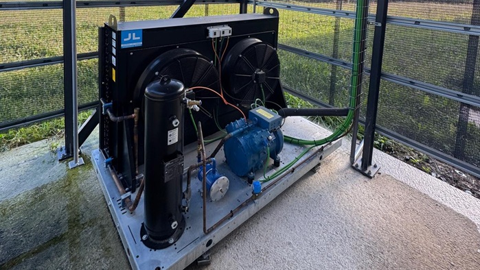 Se han instalado tres cámaras de una superficie total final de más de 700 m3, con tres conjuntos frigoríficos partidos con unidades condensadoras a distancia Frascold, evaporadores cúbicos ECO y sistema de control AKO.